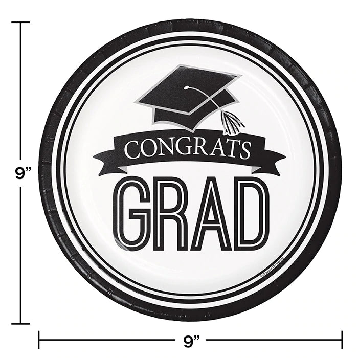 Graduation School Spirit Black & White Cake Plates - 18 pack