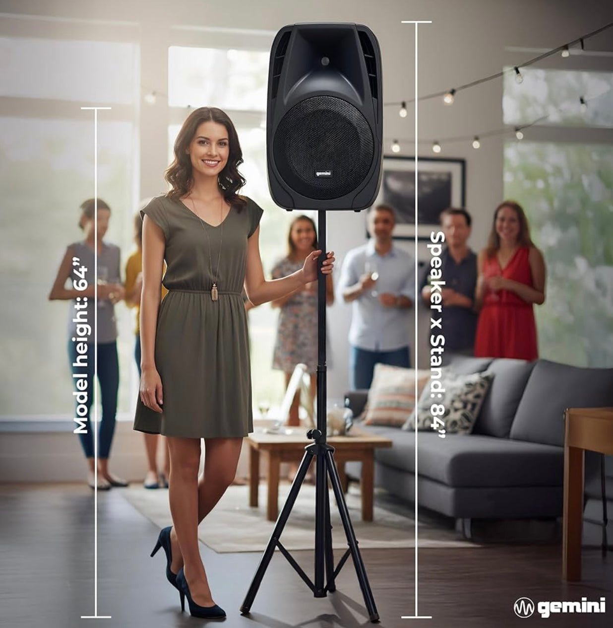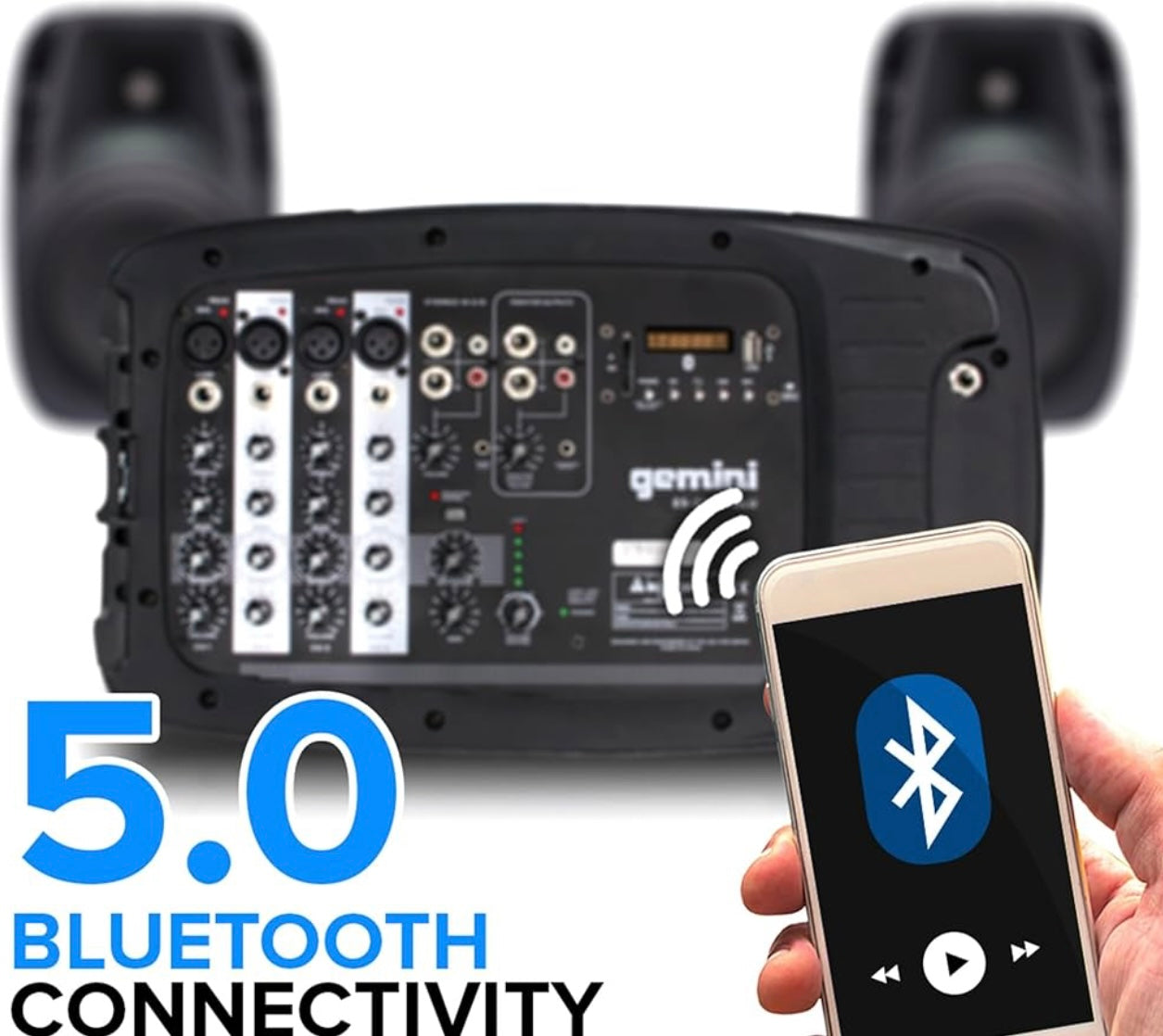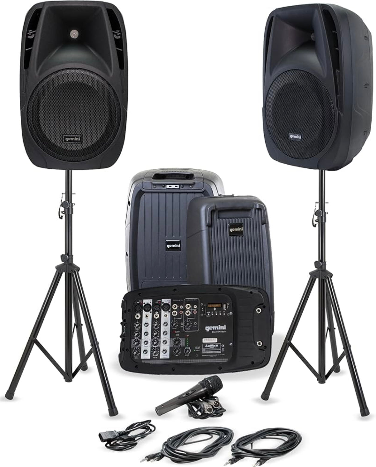 Gemini Portable PA System with Stands - 600W Bluetooth Speaker System with 6-Channel Mixer, Dual 10" Speakers, Mic & Cables - (Rental)