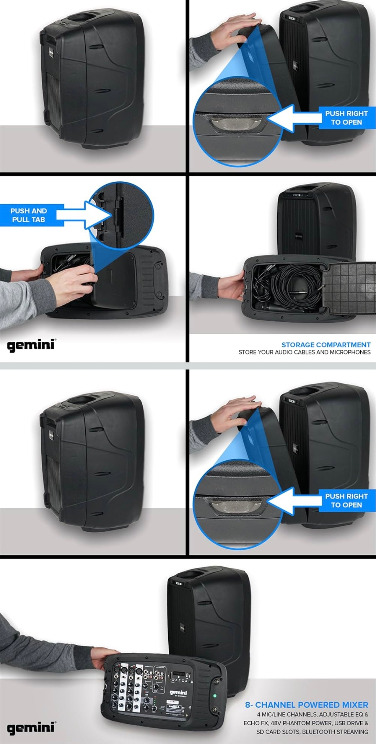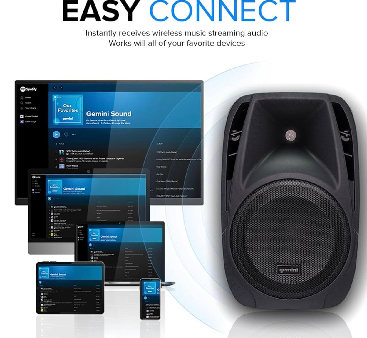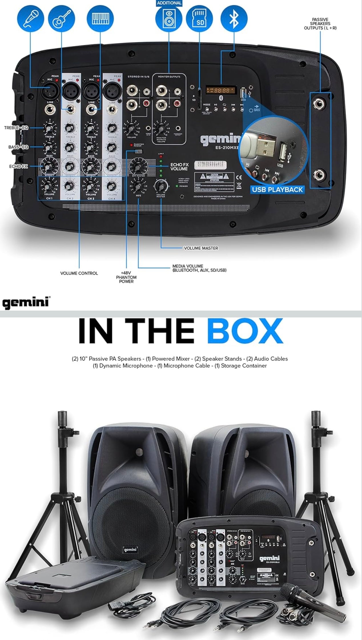 Gemini Portable PA System with Stands - 600W Bluetooth Speaker System with 6-Channel Mixer, Dual 10" Speakers, Mic & Cables - (Rental)