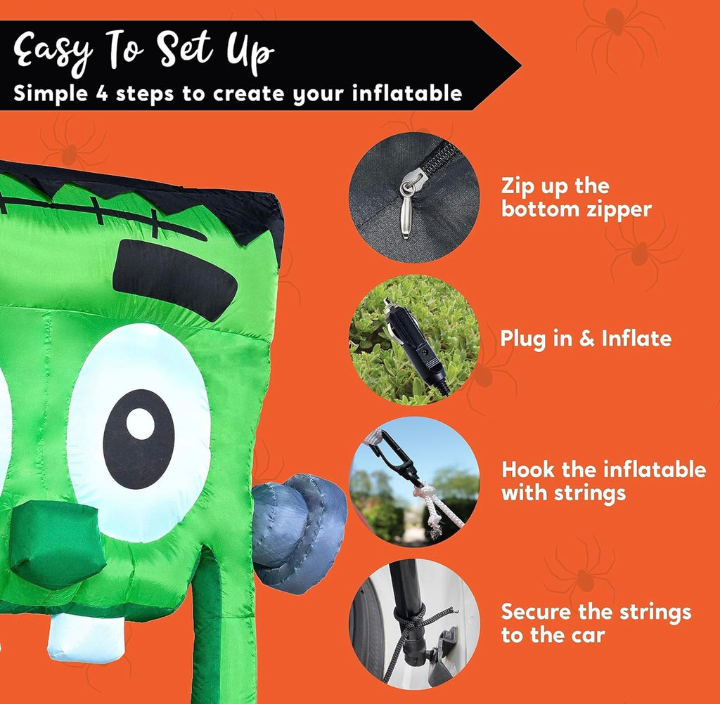 Joiedomi Halloween Inflatable Outdoor Decorations, Trunk or Treat Car Decorations Kit, Inflatable Scary Vampire with LEDs for Halloween Car Decor, Yard Decorations