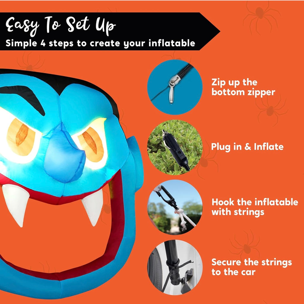 • Joiedomi Halloween Inflatable Outdoor Decorations, Trunk or Treat Car Decorations Kit, Inflatable Scary Vampire with LEDs for Halloween Car Decor, Yard Decorations